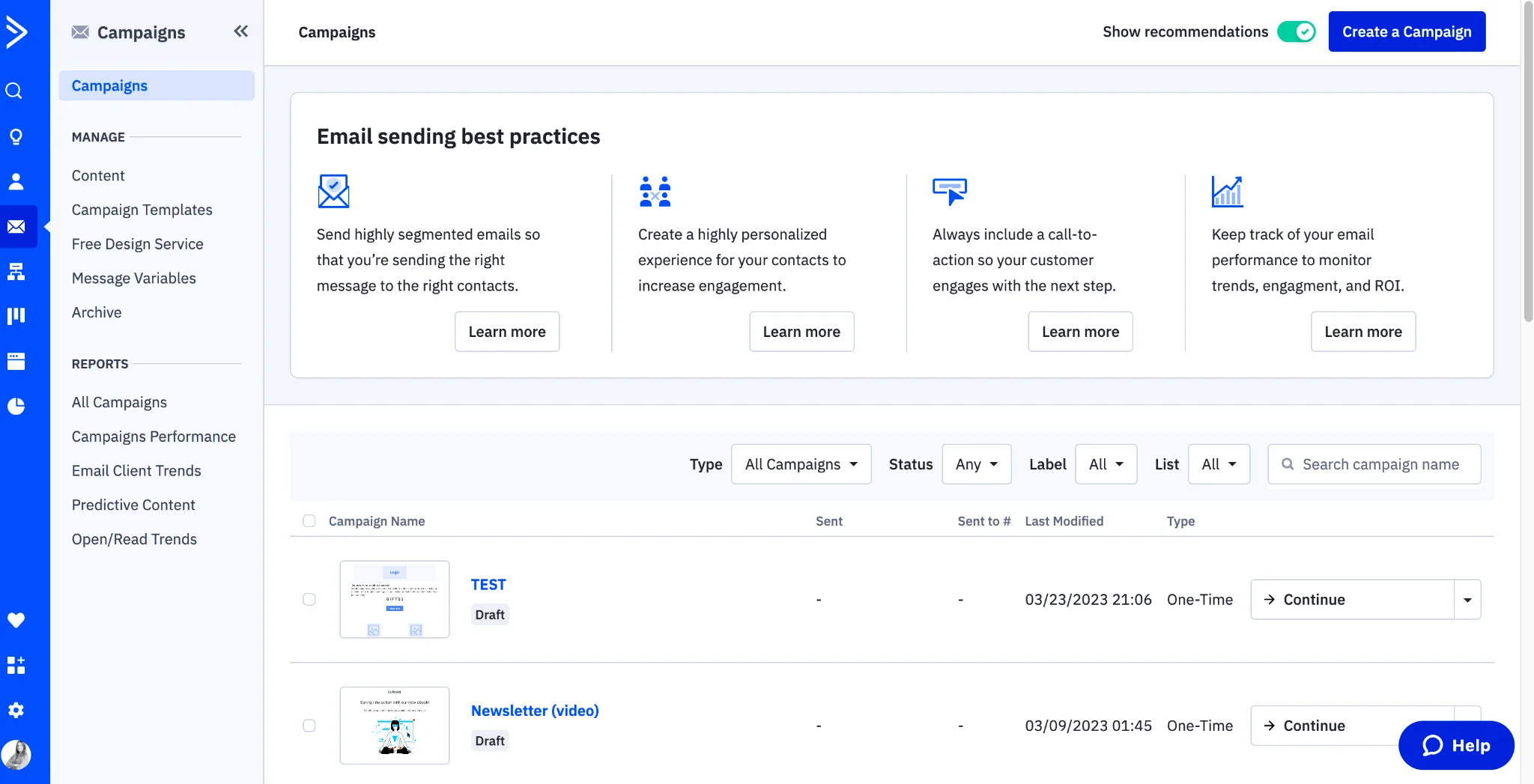 ActiveCampaign supports A/B testing and various campaign types like date-based and RSS triggered campaigns. Utilizing these features helps refine your messaging and delivery strategy over time, leading to continuous improvement.